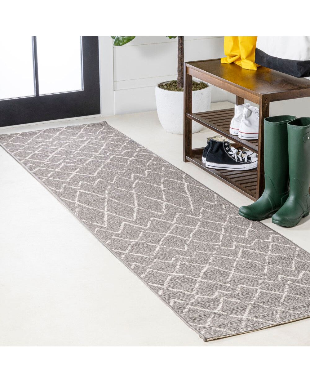 Inspired by vintage Moroccan rugs, our indoor/outdoor rug adds modern Bohemian style to your porch, patio or sunroom. The classic Moroccan pattern has a geometric design of beige diamonds on a field of dark gray. Mingled threads give this rug a handwoven, vintage vibe that's perfect for an entry, kitchen, hallway, living room or bedroom too. The pet-friendly and kid-proof flatweave design makes it easy to clean, and perfect for the beach house.