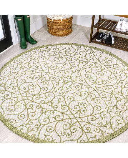 Madrid Vintage Filigree Textured Weave Indoor/Outdoor Round Area Rug