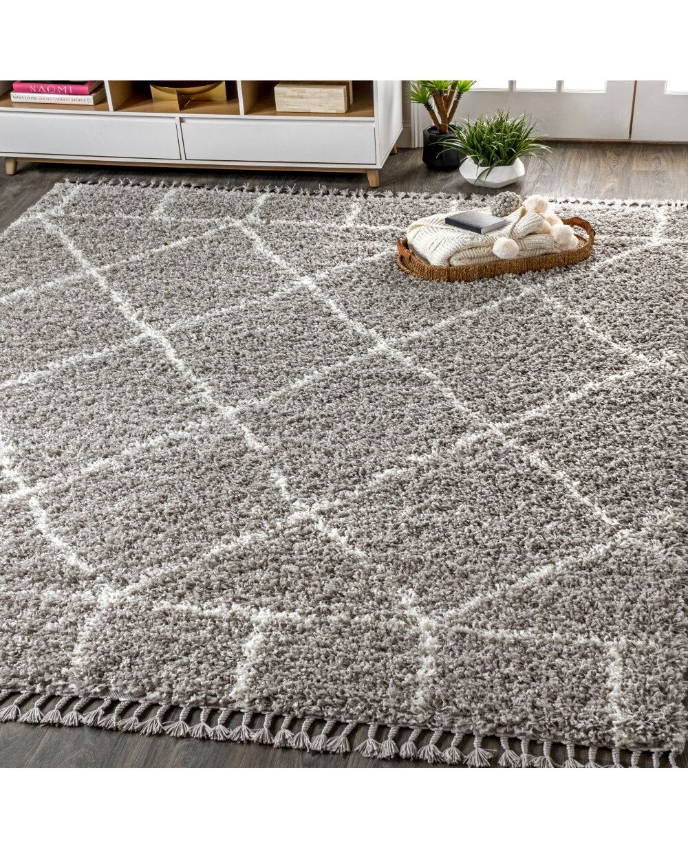 Mercer Shag Plush Tassel Moroccan Geometric Trellis Area Rug