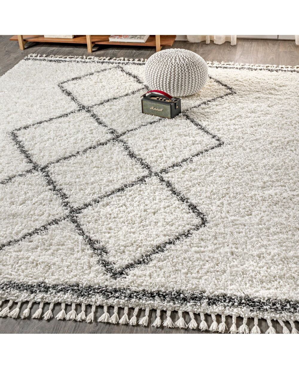 Mercer Shag Plush Tassel Moroccan Tribal Geometric Trellis Area Rug