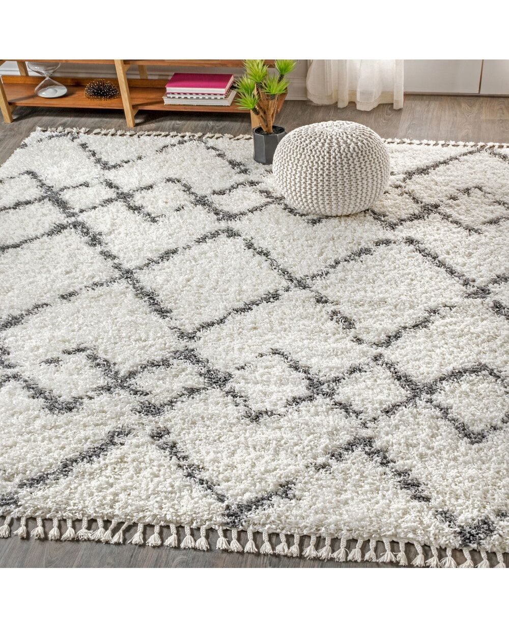 Mercer Shag Plush Tassel Moroccan Tribal Geometric Trellis Area Rug