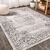 This ornate medallion rug's scrolling filigree pattern adds dreamy Bohemian cottage style to a living room, dining room, entry or bedroom. Mediterranean wrought iron is the inspiration for this design. The ivory pattern on a mingled gray background gives this rug a hand-woven, vintage vibe.
