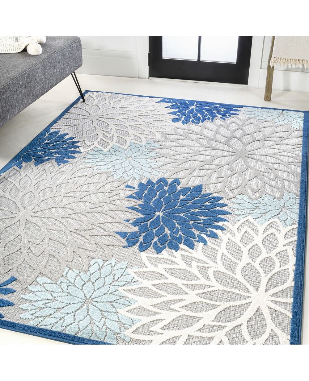 With its splashy, modern floral pattern in blue and orange, this indoor-outdoor rug has a fresh look that's ideal for a family room, dining room, bedroom, or kids' rooms. Soft, durable synthetic fibers are an easy maintenance solution for homes with kids and pets. Choose from several colorways and add a splash of style to your porch or patio.