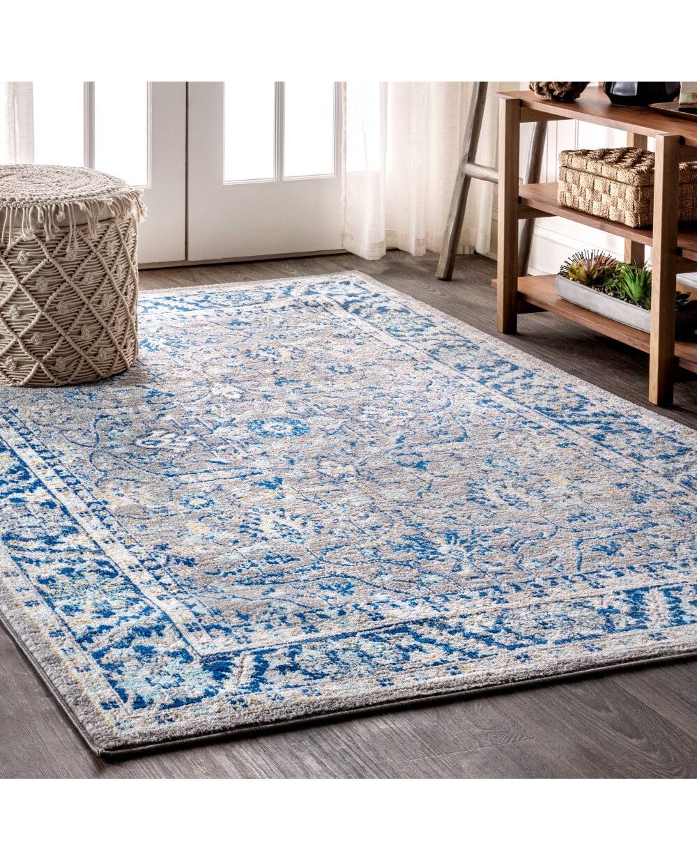 With style that says "vintage" and materials that say "modern" this beautiful rug embraces its paradox of design. With traditional floral motifs that call to mind the past, the gray and navy coloring makes it just as versatile in the designs of today. With a 1/3" pile, it is soft beneath the feet and dims noise, perfect for living spaces.