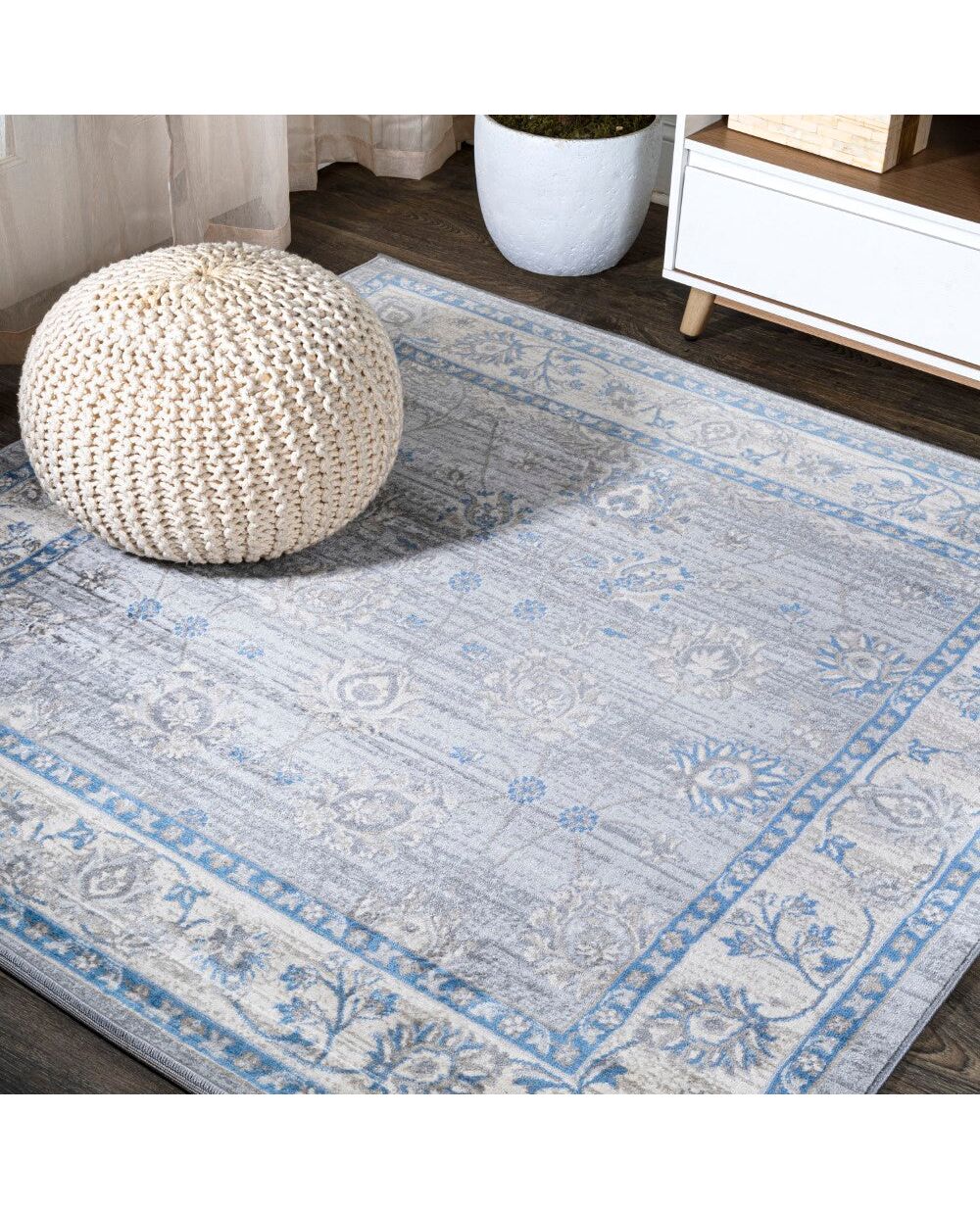 Meticulously designed based on vintage oushak rugs, this design grounds any space with elegance and sophistication. The border of ivory and the floral motif throughout lend a tradition ground on which the monochromatic color offers a modern update. Power loomed from synthetic materials, it is as durable as it is beautiful.