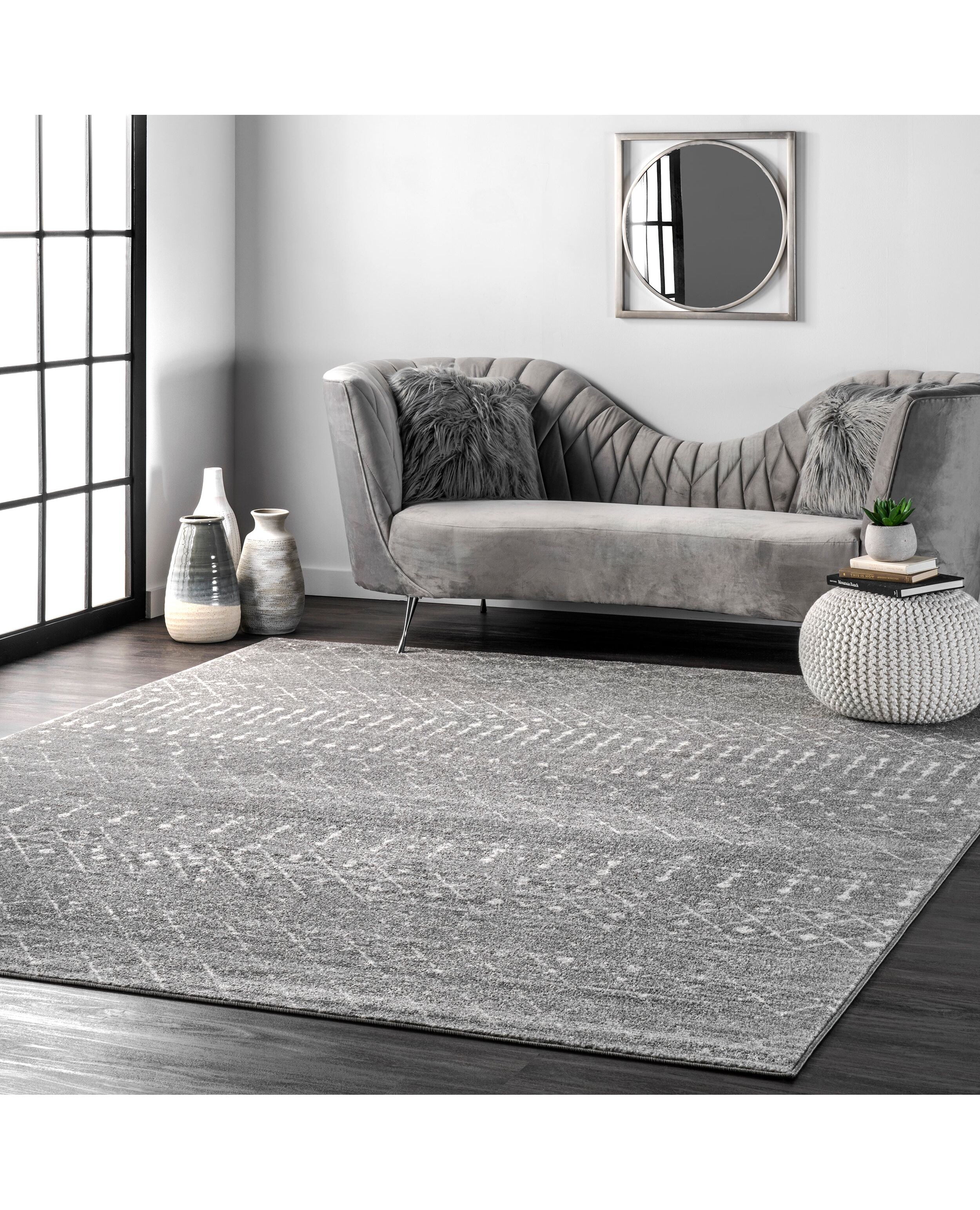 The subtly distressed motif of this rug blends Moroccan-inspired style with functional comfort. This design is available in a wide array of colors to suit your aesthetic.