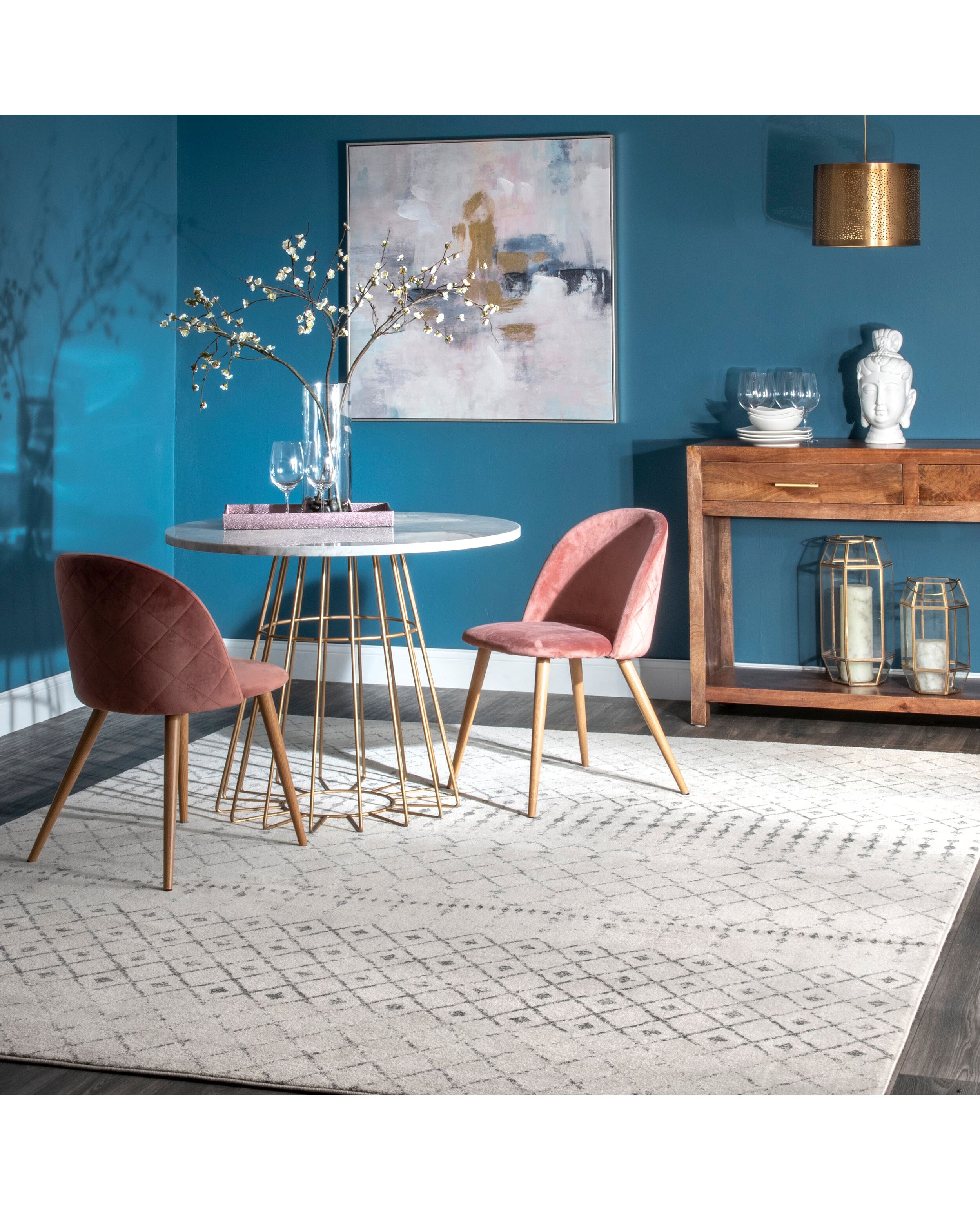 The subtly distressed motif of this rug blends Moroccan-inspired style with functional comfort. This design is available in a wide array of colors to suit your aesthetic.