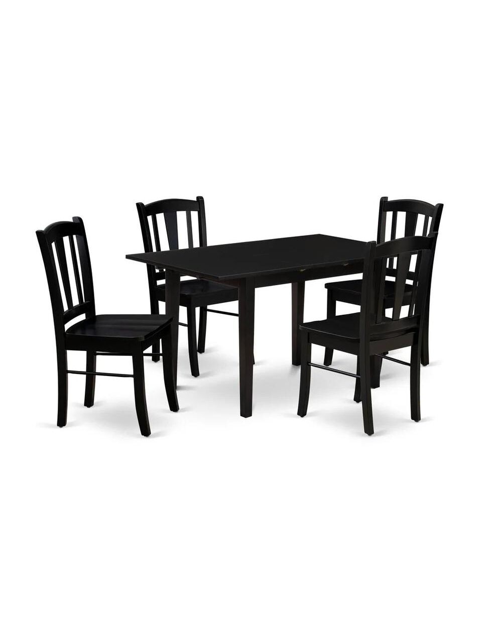 NFDL5-BLK-W - 5-Piece Kitchen Table Set- 4 Wood Chair with Wooden Seat and Slatted Chair Back - Butterfly Leaf Rectangular Dining Table (Black Finish)