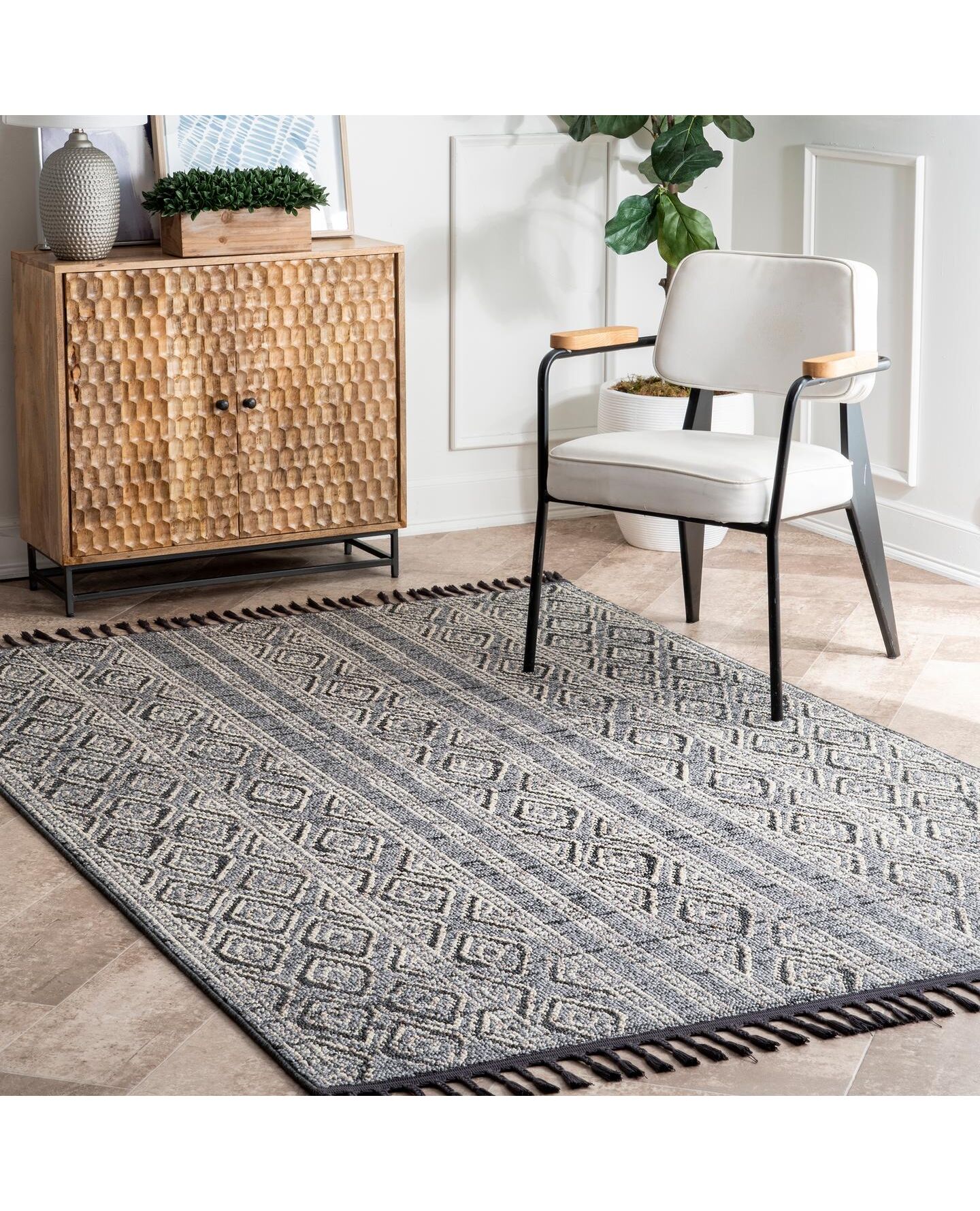 nuLOOM Chenoa Striped Tribal Tassel Area Rug