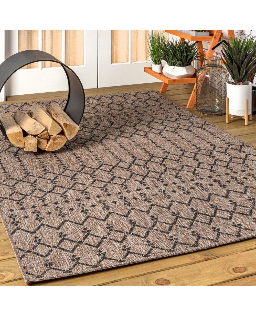 With its geometric design inspired by Moroccan tribal patterns, our Boho-chic rug adds eclectic style to an outdoor porch or patio. Varied tones of black and charcoal mingled with a light gray pattern give this rug a hand-woven, vintage vibe. The flatweave design is great for high-traffic spaces indoors too.