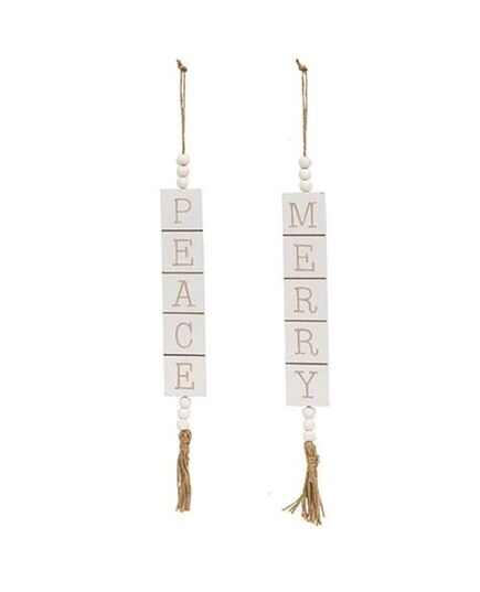 *Peace or Merry Wooden Tile Hanger 2 Asstd.