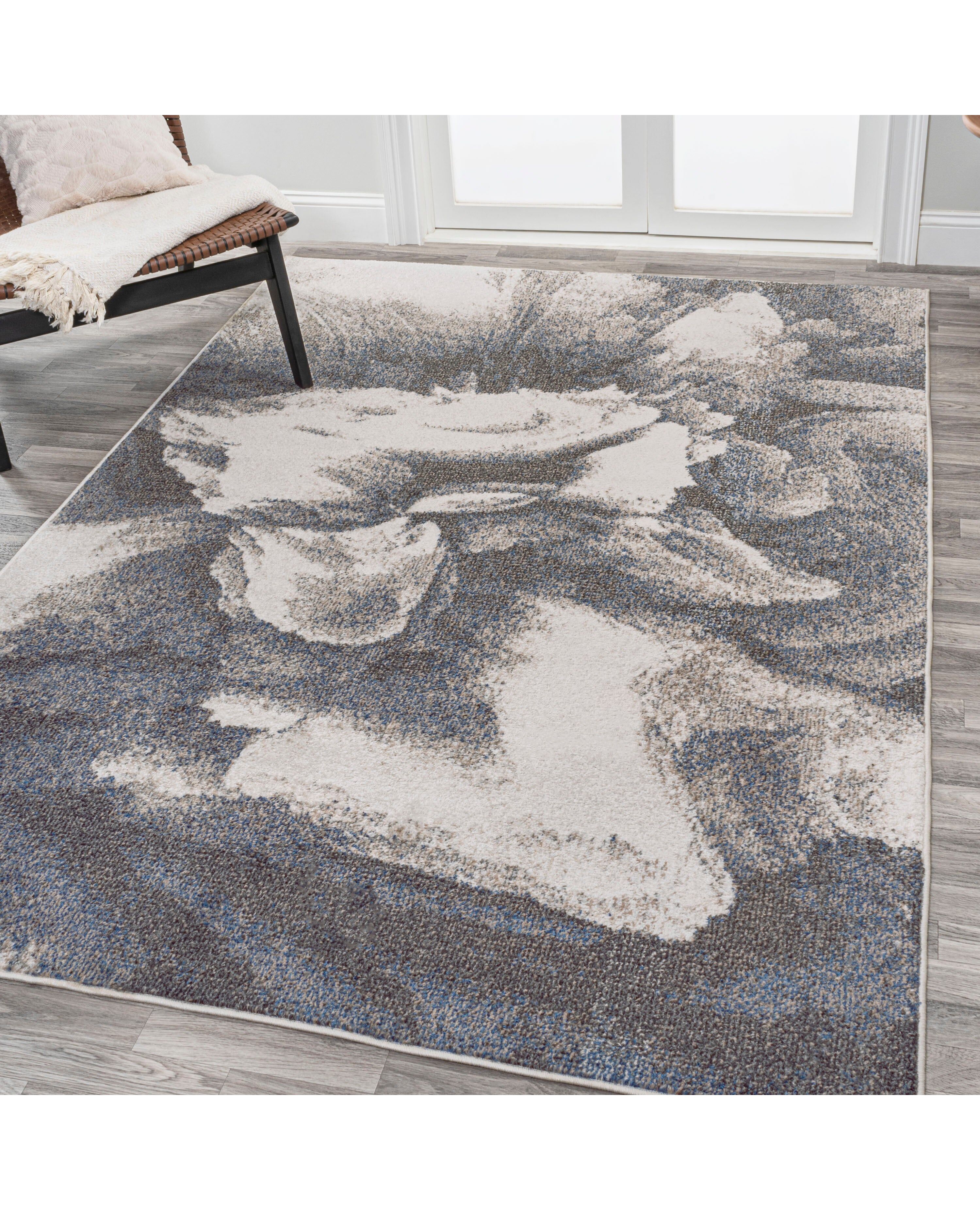 Inspired by the folded petals of a flower, this bold rug has a modern, coastal vibe. The modern, abstract design's overall pattern makes it perfect for homes with kids and pets. It's the perfect centerpiece for a mid-century modern, contemporary, beach house or minimalist interior.