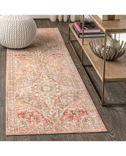 Ornate medallions in the center of this design recall vintage Turkish rugs, but the color palette is modern. Neutral gray-brown mingles with ivory for a distressed look. Use this stylish rug in a city apartment or coastal home, for a bedroom, living room, dining room or den.