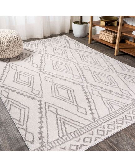 Inspired by vintage Beni Ourain Moroccan rugs, our easy-care rug has a soft, low pile. The classic Moroccan pattern features a geometric gray diamond trellis on a field of ivory. Anchor your Bohemian space; add softness to a bedroom, living room, dining room, kitchen or entry; this is a durable rug with timeless style.