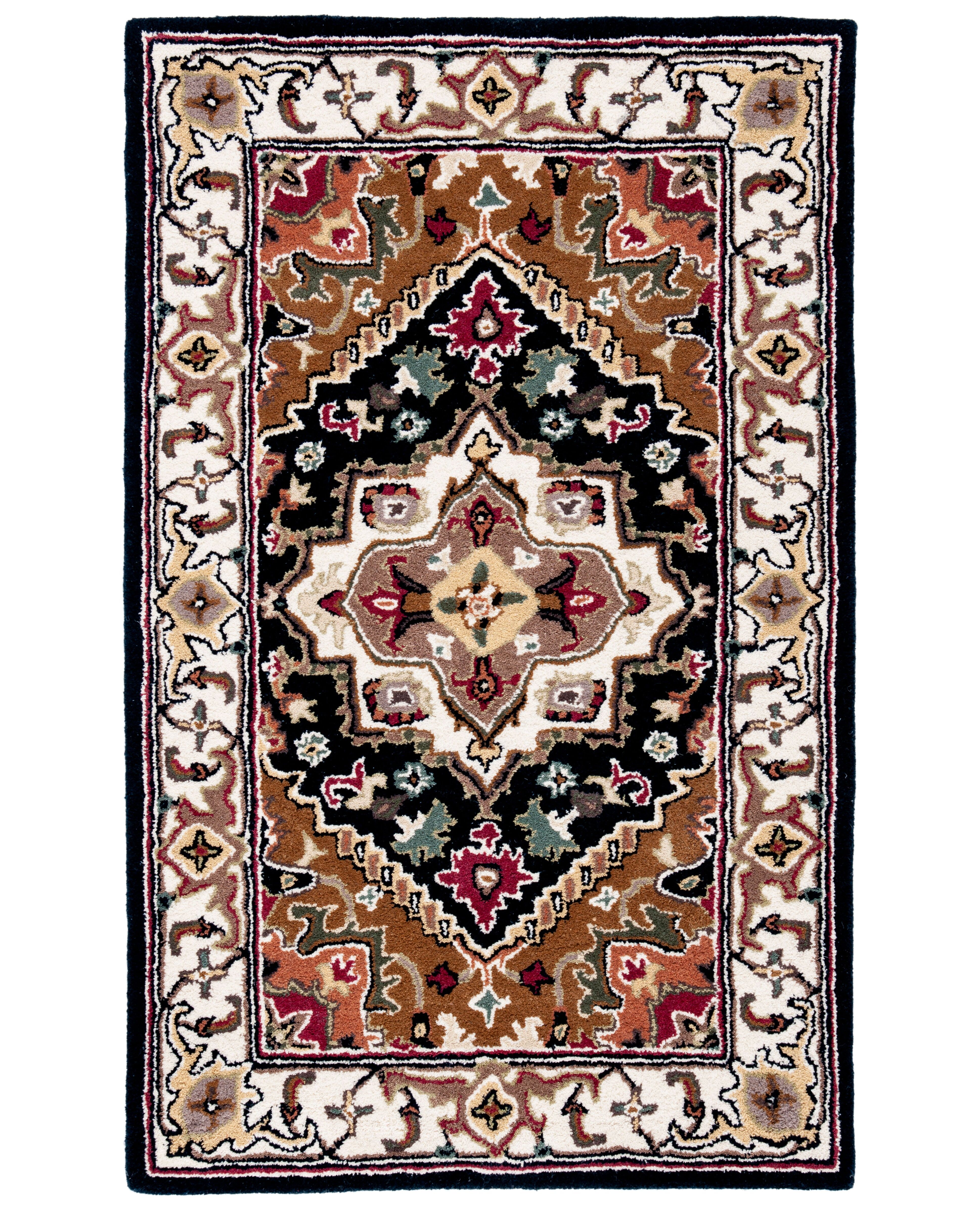 The Heritage Collection is comprised of finely crafted rugs that will invigorate any space with rich, luscious detailing, vibrant textures and colors that will illuminate the room. Every rug is hand-tufted of pure wool with a strong cotton backing making these traditionally styled rugs both beautiful and durable. Rug has an approximate thickness of 0.5 inches.For over 100 years, SAFAVIEH has set the standard for finely crafted rugs and home furnishings. From coveted fresh and trendy designs to timeless heirloom-quality pieces, expressing your unique personal style has never been easier. Begin your rug, furniture, lighting, outdoor, and home decor search and discover over 100,000 SAFAVIEH products today.