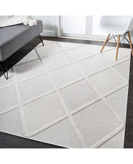 Inspired by timeless Mediterranean patterns, this indoor-outdoor rug adds cool neutral tones to a kitchen, living room, bedroom or dining room. The ivory trellis design is an easy maintenance solution for homes with kids and pets. Outdoors, this rug adds classic color and traditional pattern to your patio or porch.