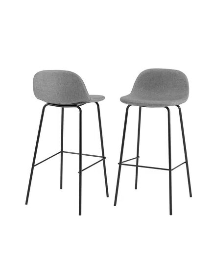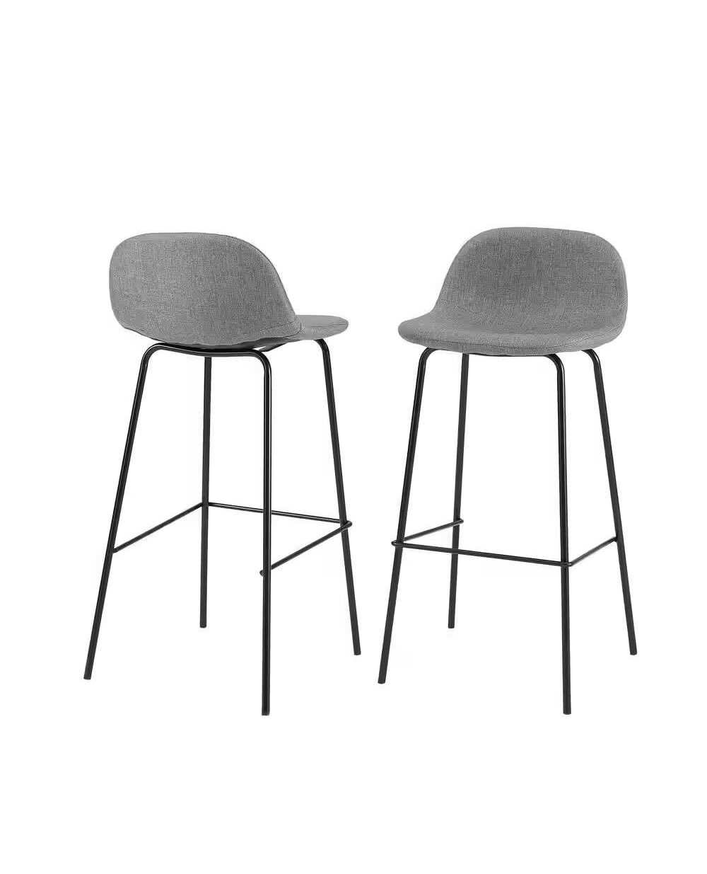 Set of 2 - Modern Low Back Barstool with Black Metal Frame and Grey Linen Seat