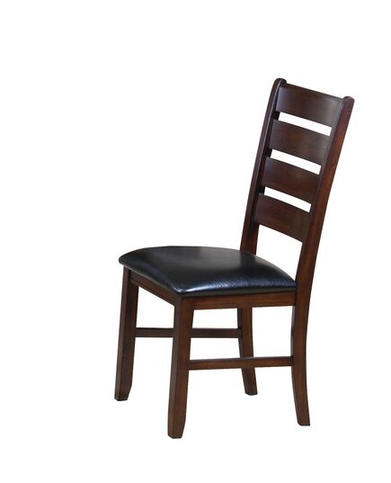Set of Two Black And Dark Brown Upholstered Faux Leather Slat Back Dining Side Chairs