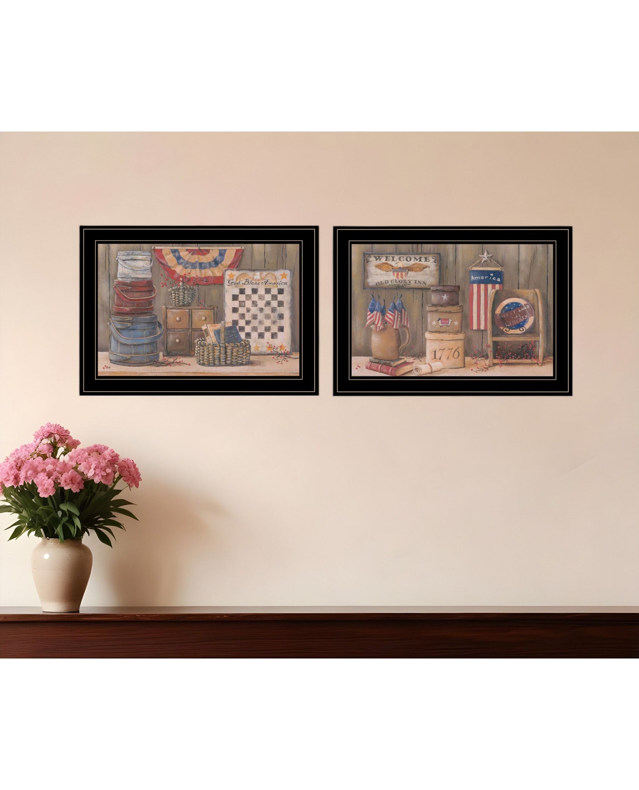 Set Of Two God Bless or Sweet Land 2 Black Framed Print Wall Art