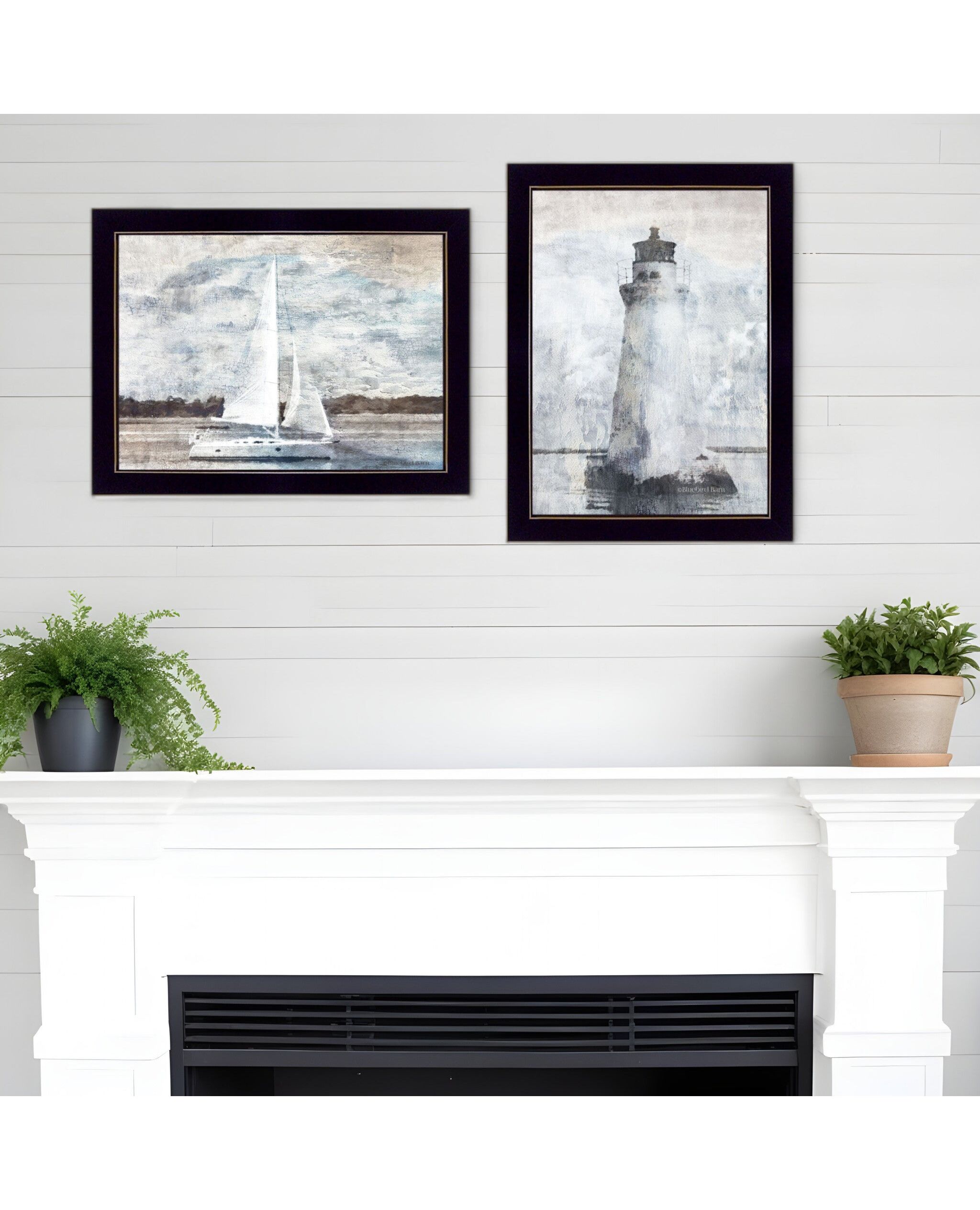 Set Of Two Lighthouse Sailboat Black Single Rim Framed Print Wall Art