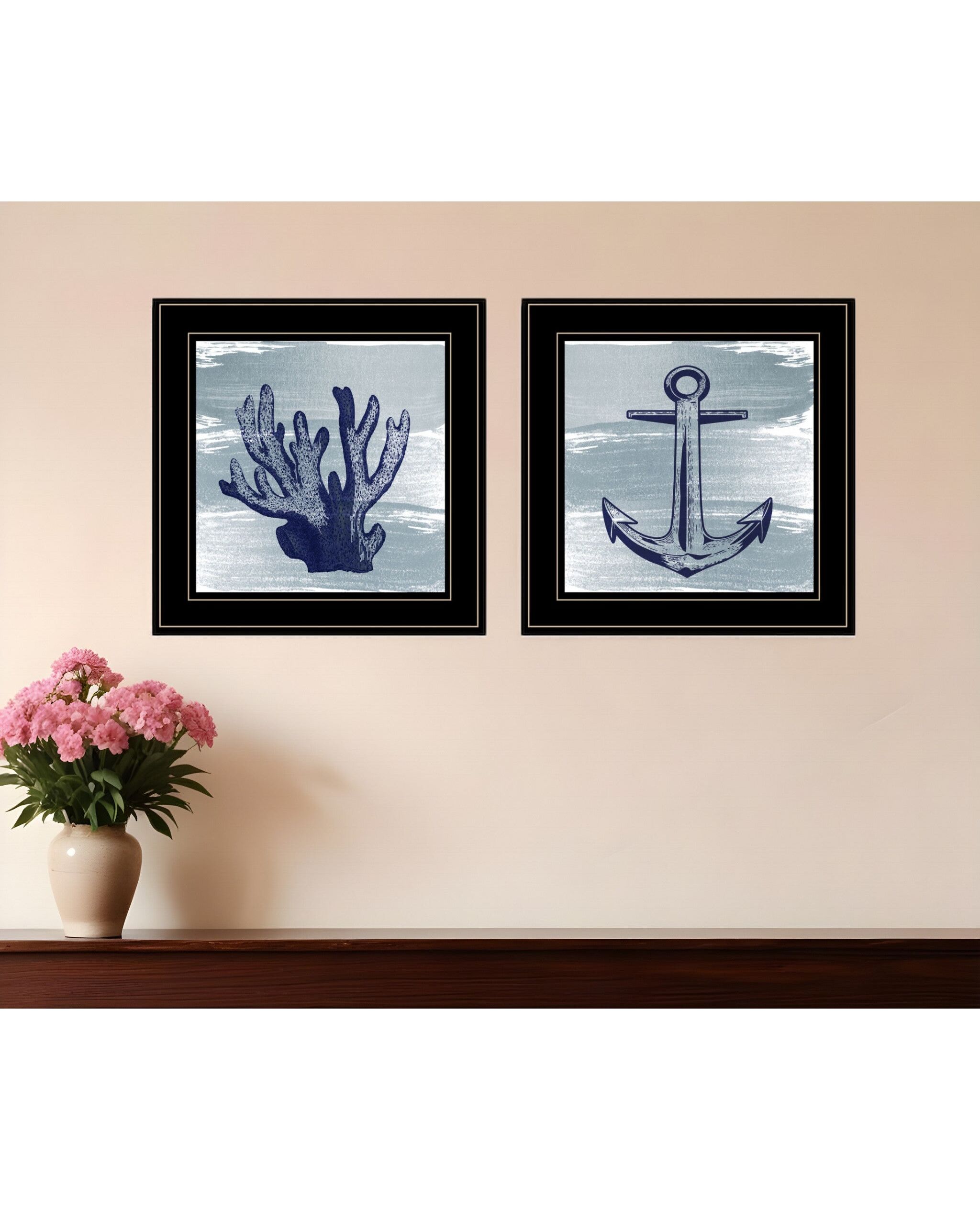 Set Of Two The Beach Coastal 2 Black Framed Print Wall Art