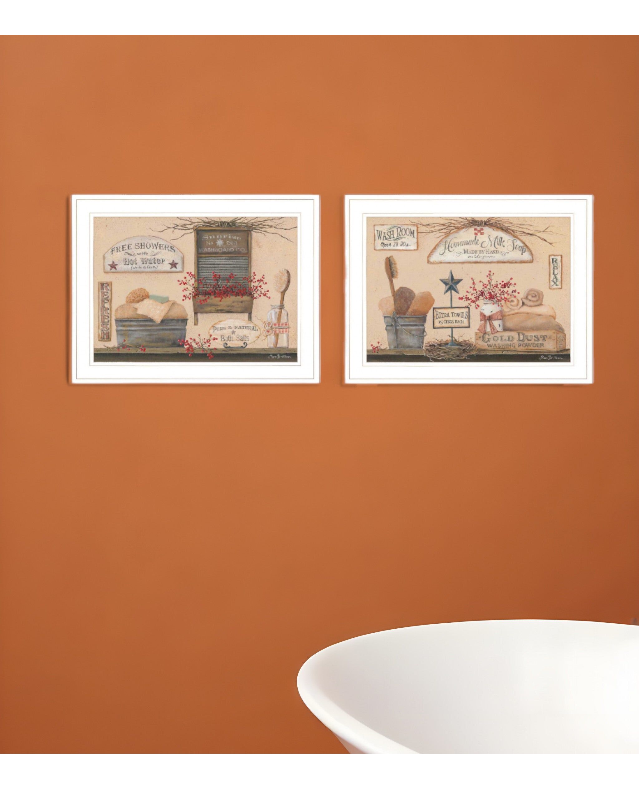 Set Of Two Wash Room 4 White Framed Print Bathroom Wall Art