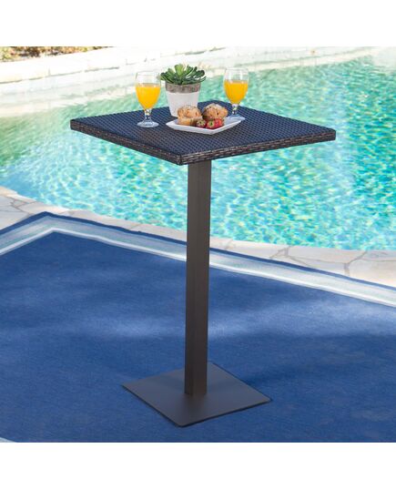 Simplie Fun 26" Square Rattan Bar Table With Iron Frame