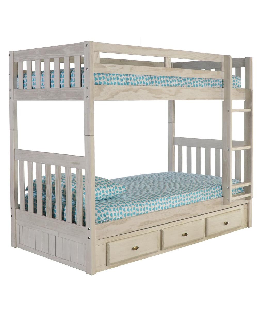 Solid Pine Twin/Twin Bunk Bed with Three Drawers