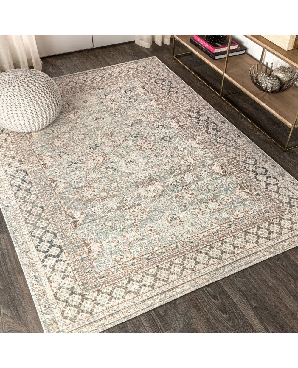 This rug is a classic, with shabby-chic style inspired by English Country homes. A center field of stylized flowers is surrounded by a stylish argyle border, all in deep indigo blue. This ornate rug is an elegant touch for your living room, bedroom, dining room, or den.