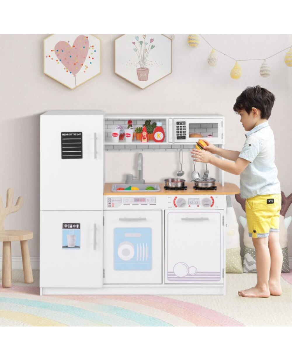 Toddler Pretend Play Kitchen Toy with Stove for 3+ Boys and Girls-White