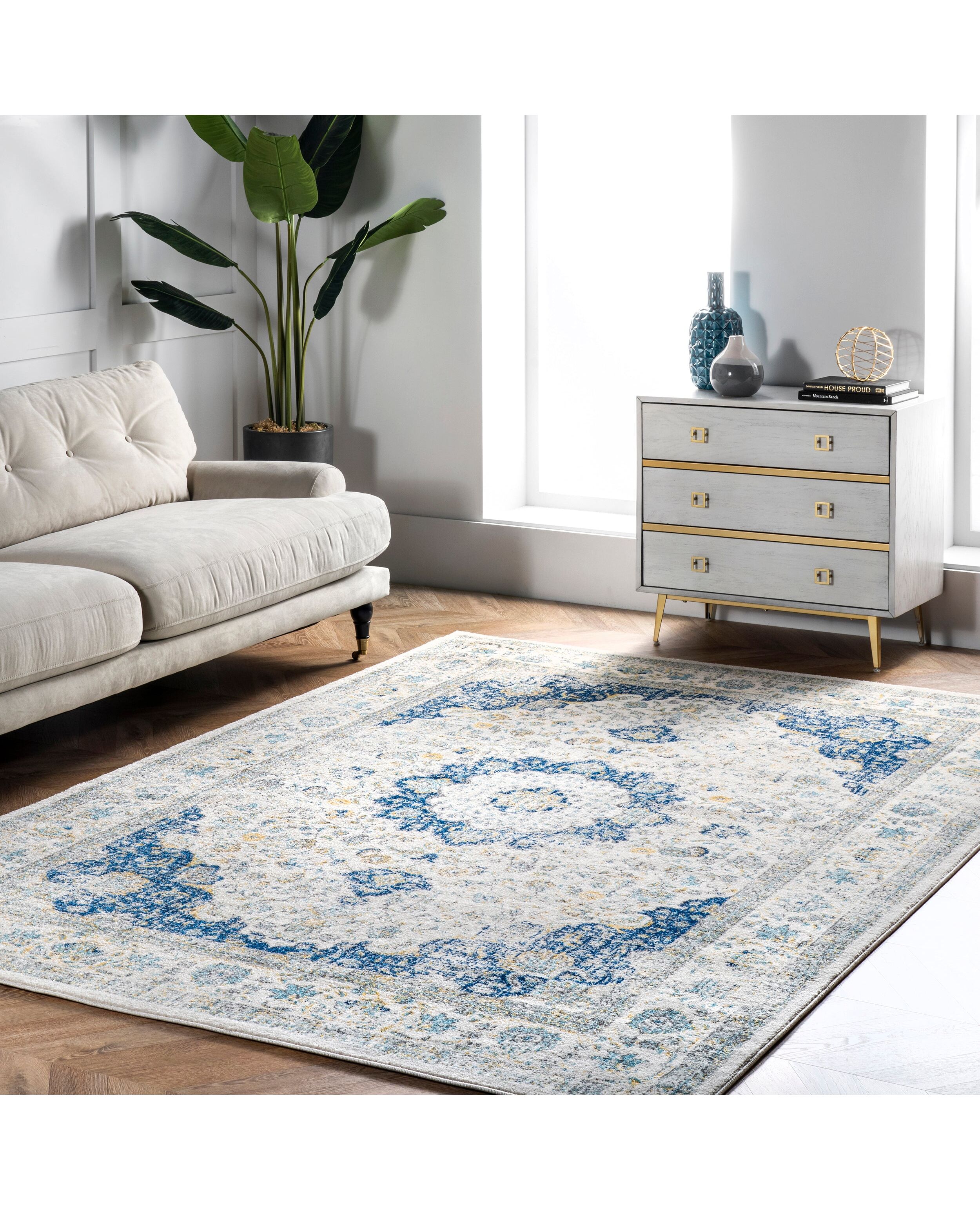 This subtly distressed medallion blends a classic traditional pattern with an updated style and functional comfort. This design is available in a wide array of colors to suit your aesthetic.