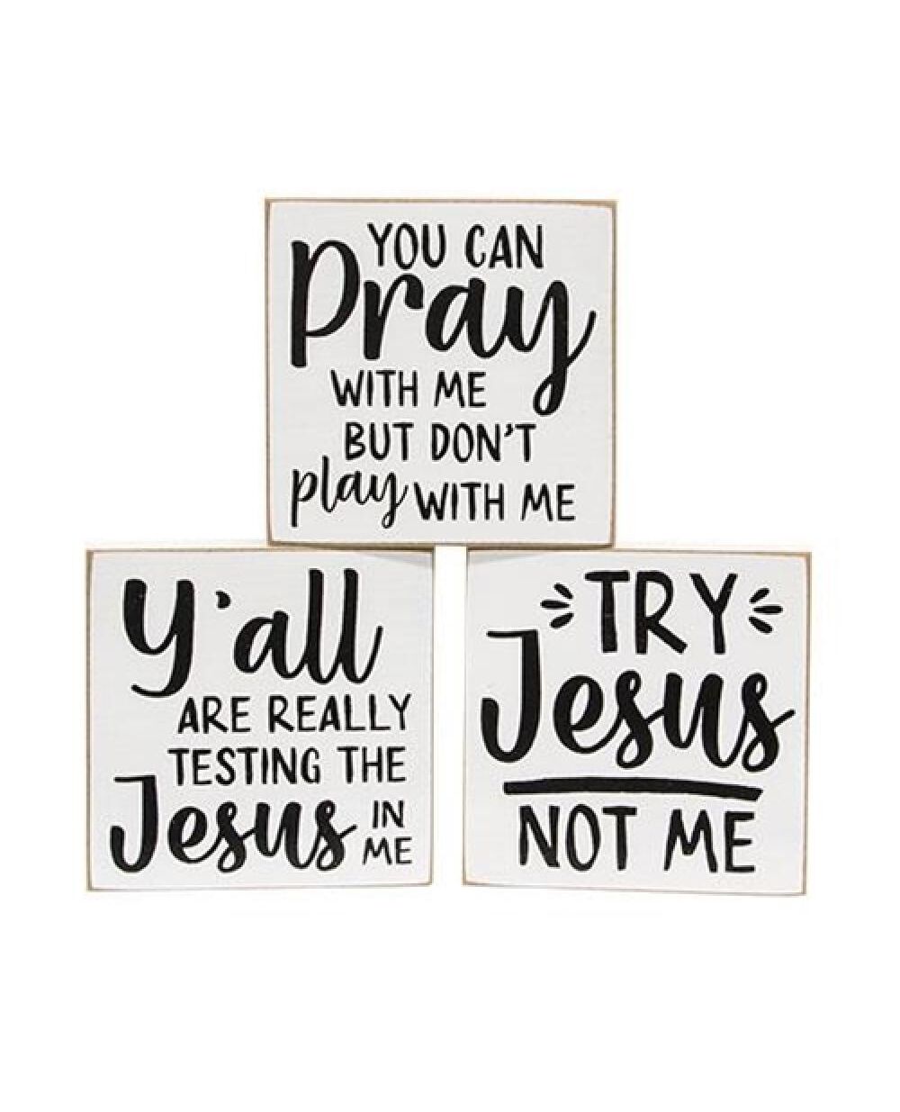 Try Jesus Not Me Square Block 3 Asstd.