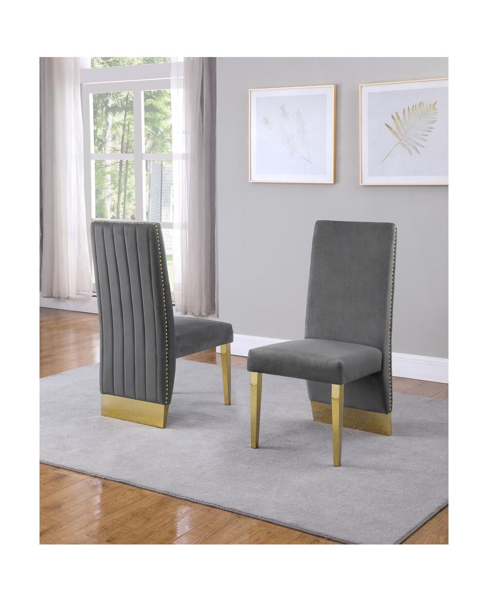 Tufted Velvet Upholstered Side Chair, 4 Colors to Choose (Set of 2) - Dark grey