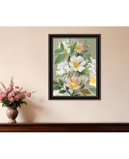 Walk Humbly Floral 1 Black Framed Print Wall Art