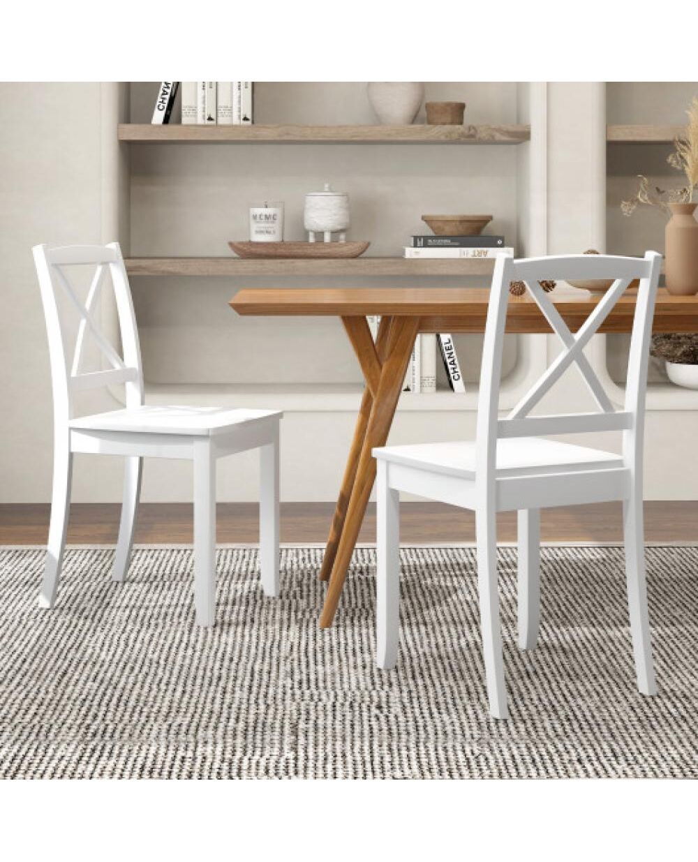 Wood Dining Chair Set of 2 with Rubber Wood Legs and Curved Backrest-White