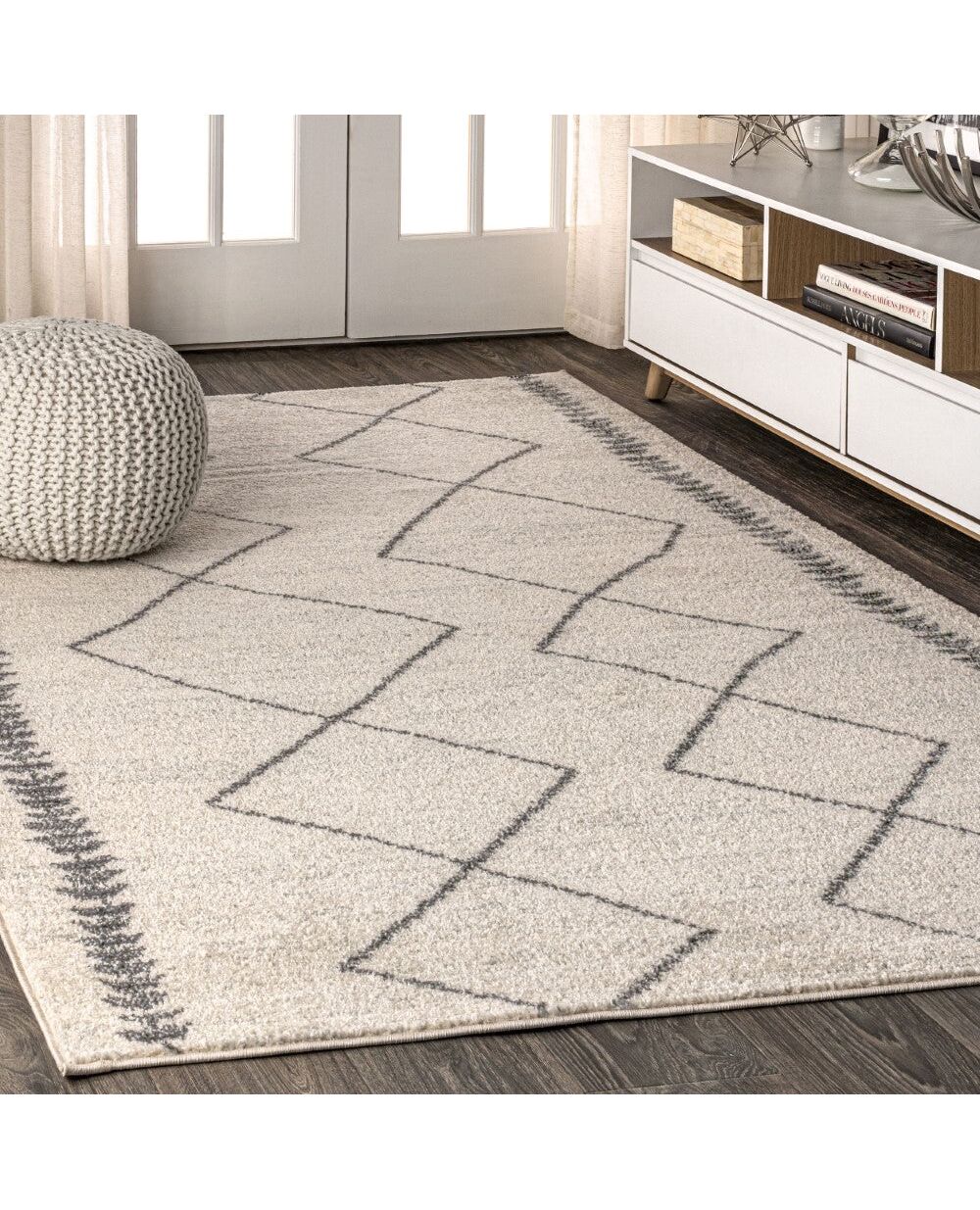 Inspired by vintage Beni Ourain Moroccan rugs, our modern version is power-loomed with a short pile. Diamonds and geometric forms are woven in gray on a field of ivory; the mingled threads recall traditional handwoven rugs. Add some Bohemian style to your home with this easy-care rug.