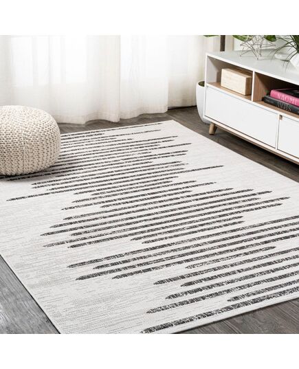 Inspired by vintage Moroccan rugs, our modern striped rug has a soft, low pile. The stripe pattern is woven down the center in a tribal-inspired design that recalls traditional Berber rugs. Add some Bohemian style to your living room, bedroom, or reading nook with this easy-care rug.