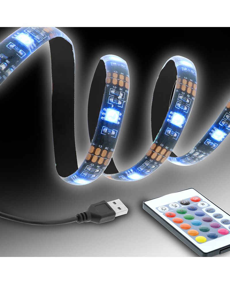 USB Powered with remote control Water and dust reistant light strip with adhesive backing Choose between 16 colors, flahsing, strobe, fade, and smooth Adjustable length for TV's up to 60 Inches Includes: LED Controller, 80 Inch LED Strip, and Remote Control