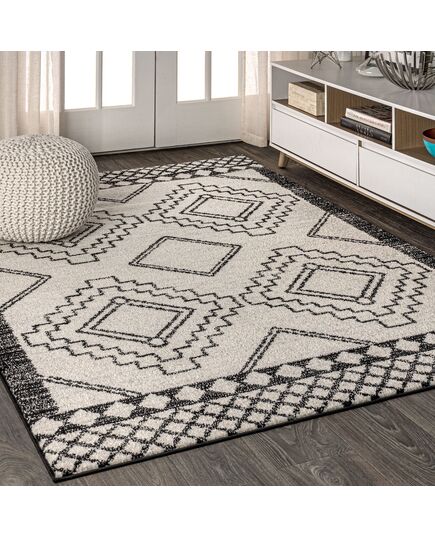 Moroccan influences abound in the geometric design of this rug. Shades of ivory create a lively medallion design against a trendy gray background. Add graphic impact to a modern room, or make this rug part of your Boho-chic story.