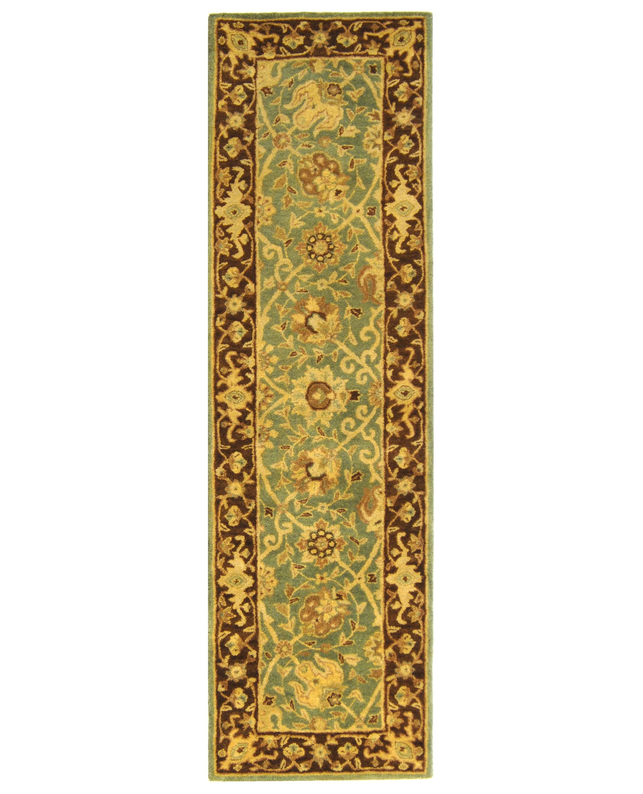 The refined look of antique Persian rug design is masterfully revived for today's extraordinary home decor in the Antiquity Rug Collection. Rich colors and evocative motifs lend heirloom qualities to classy-casual and traditional room decor, with a special herbal wash enhancing the marvelous aged patina of this collection. These rugs are expertly hand-tufted of 100% premium wool. Rug has an approximate thickness of 0.5 inches.For over 100 years, SAFAVIEH has set the standard for finely crafted rugs and home furnishings. From coveted fresh and trendy designs to timeless heirloom-quality pieces, expressing your unique personal style has never been easier. Begin your rug, furniture, lighting, outdoor, and home decor search and discover over 100,000 SAFAVIEH products today.