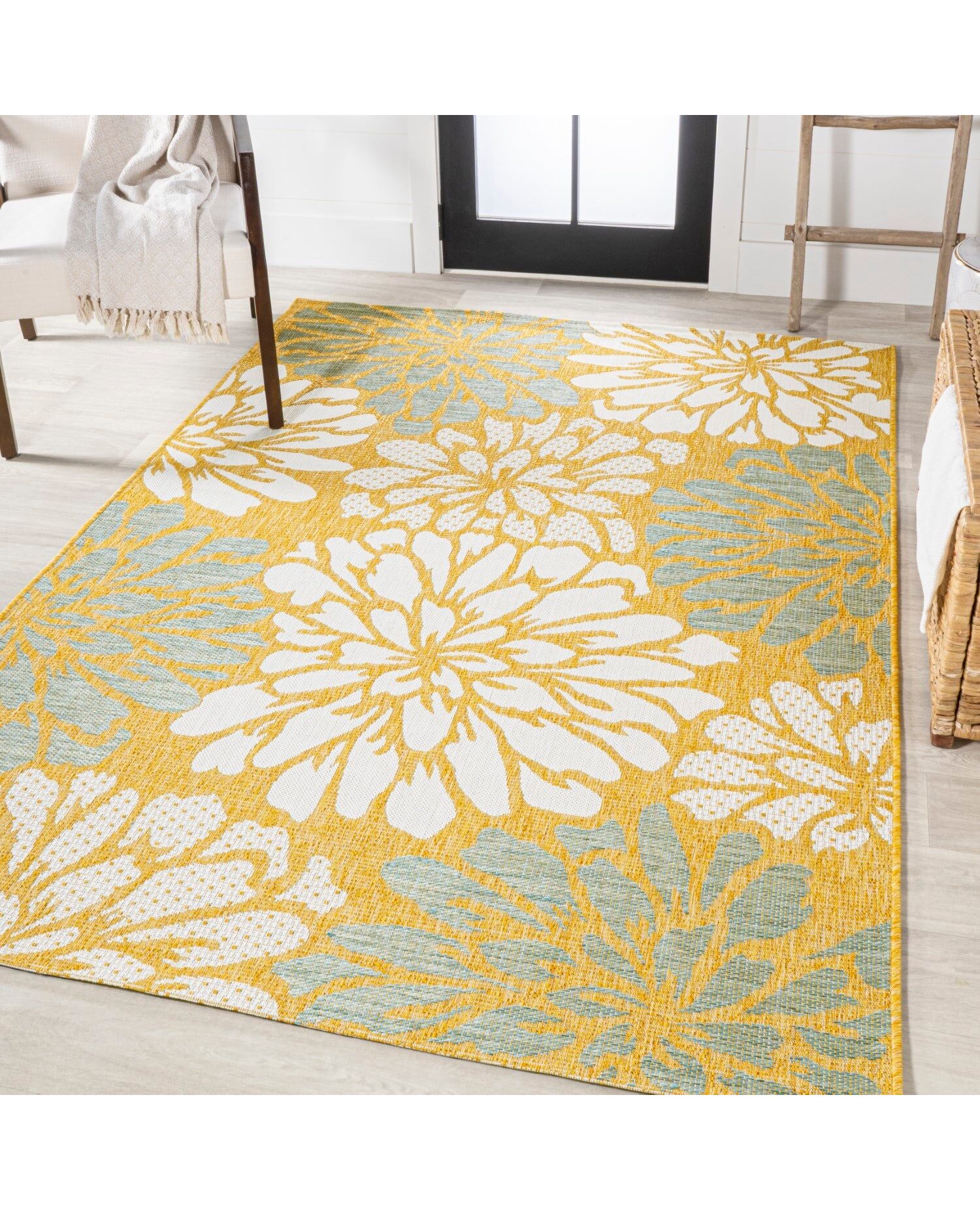 Zinnia Modern Floral Textured Weave Indoor/Outdoor Area Rug