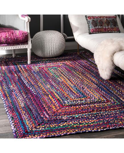 Brighten your room with this distinctively vivid rag rug. Hand crafted in India of recycled cotton, each piece carries with it a variation in color and pattern unique to the artisan who wove it. Because of the handmade nature of these rugs, no two will look exactly alike.