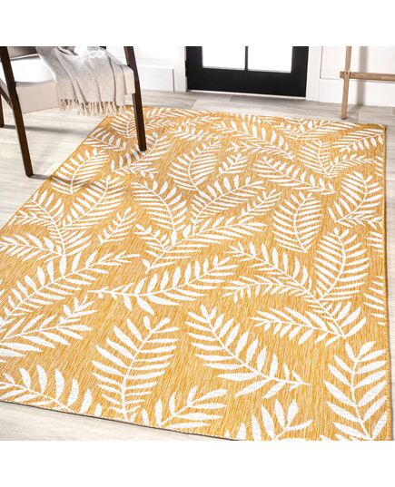 Whether you live in a tropical beach retreat or just love jungalow style, the allover palm frond pattern of this rug brings the jungle home. Scattered palm tree branches create graphic contrast in rich orange and cream tones. The busy pattern is perfect for your tropical patio, entry, kitchen, hallway, living room or bedroom. The pet-friendly and kid-proof flatweave design makes it easy to clean, and perfect for the beach house.