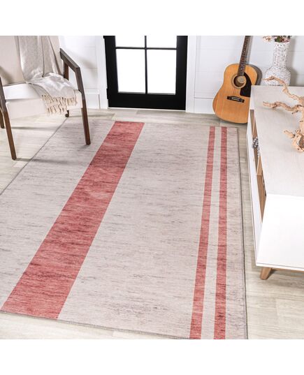 Raita Modern Distressed Stripe Machine-Washable Ivory/Pink Area Rug