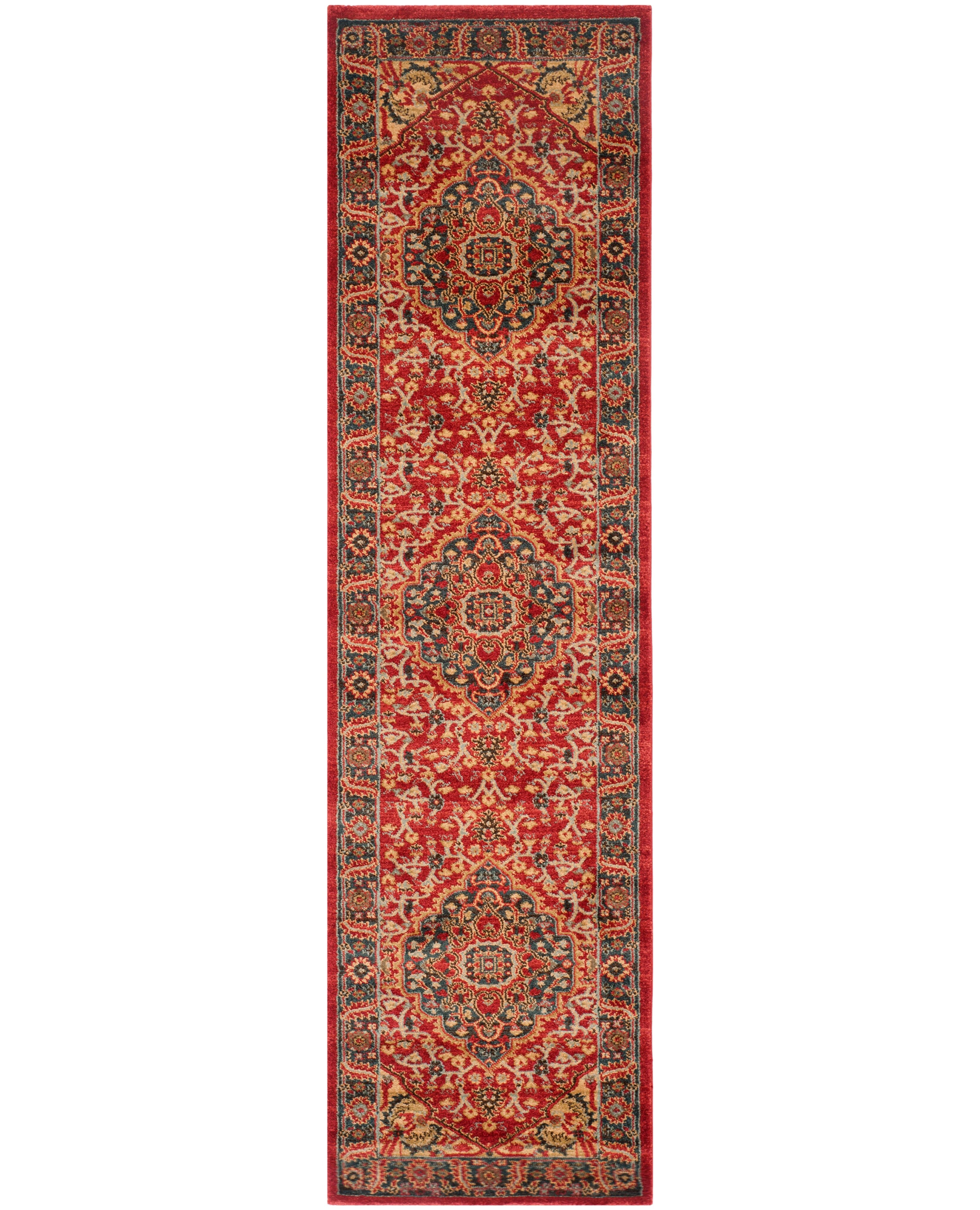 SAFAVIEH’s Mahal Collection celebrates the ancient Persian motifs and rich colors of centuries-old elaborate area rugs. These rugs are machine-woven with long-wearing, easy-care synthetic yarns for virtually no-shedding, even in medium to high-traffic areas of the home. Featured in traditional Oriental patterns, these stunning rugs add an heirloom charm to classically styled or sophisticated casual room décor. Rug has an approximate thickness of 0.375 inches.For over 100 years, SAFAVIEH has set the standard for finely crafted rugs and home furnishings. From coveted fresh and trendy designs to timeless heirloom-quality pieces, expressing your unique personal style has never been easier. Begin your rug, furniture, lighting, outdoor, and home decor search and discover over 100,000 SAFAVIEH products today.
