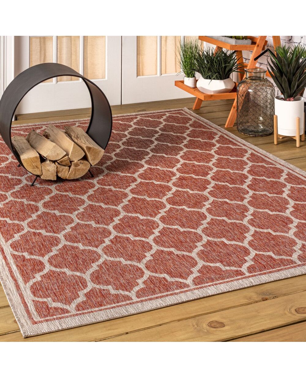 Our popular geometric design is inspired by Moroccan tile patterns. This classic rug adds eclectic style to an outdoor porch or patio. Mingled tones of deep brown with a beige ogee trellis pattern give this rug a hand-woven texture. The flatweave design is great for high-traffic spaces indoors too.
