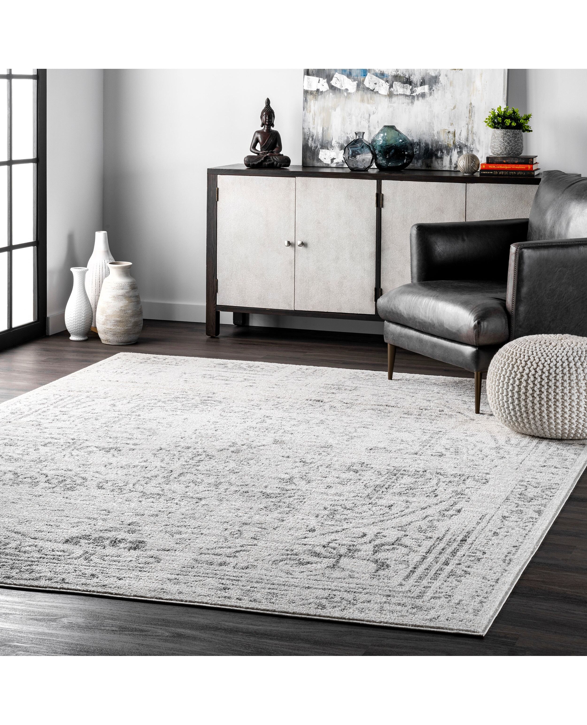 This distressed monochrome rosette design will perfectly compliment any vintage or traditional décor. Machine made in Turkey of soft synthetic materials this rug is built to last.