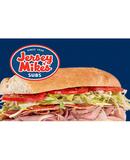 Give the gift you know they will love, A Gift Card from Jersey Mike’s! Jersey Mike’s fans crave their subs made Mike’s Way® with the freshest vegetables – onions, lettuce and tomatoes – topped off with an exquisite zing of “the juice†– red wine vinegar and olive oil blended to perfection. Jersey Mike’s premium meats and cheeses are sliced on the spot, piled high on in-store baked bread and served up with a helping of neighborly banter from a dedicated and high-energy team.