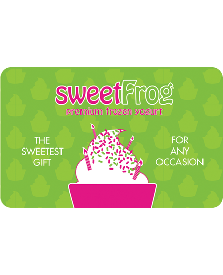 Welcome to sweetFrog® — where our goal is to create the best frozen yogurt experience you've ever had! You create your own combination of delicious, soft-serve premium frozen yogurt, then finish it off with any toppings you choose. People love to get sweetFrog eGift cards because they know they’re in for a great time and a tasty treat.