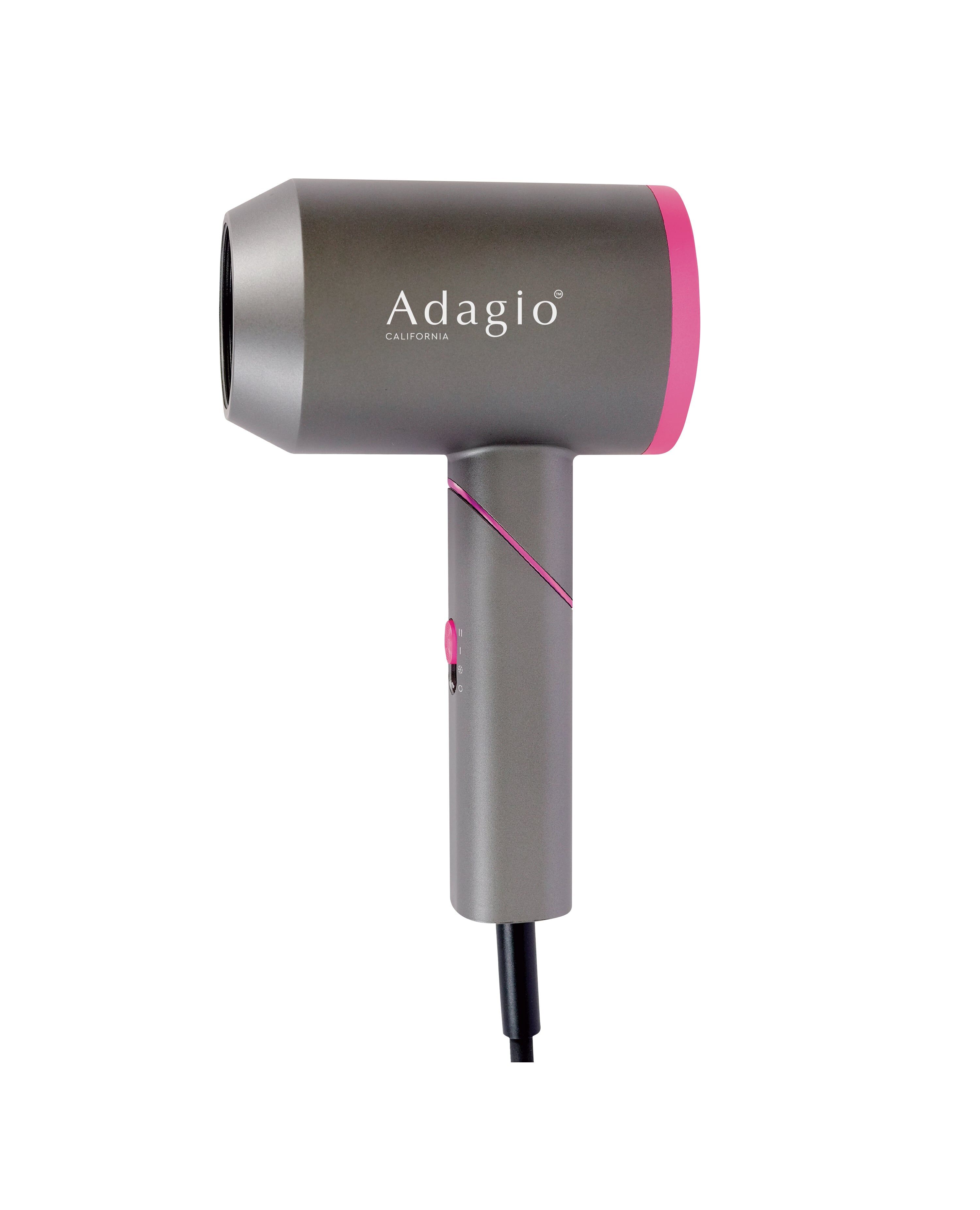 The Adagio Accelerator 2100 Blow Dryer is a professional-level blow dryer equipped with fast-drying technology that speeds up dry-time by 35%! Achieve your desired style by choosing from two adjustable speed settings and three adjustable heat settings to dry hair in record time, all while protecting from excessive heat damage. Use the style-finishing cool shot to ensure a long-lasting blow-dry, and to enhance smoothness and shine.The lightweight, ergonomic shape is designed for ease of use, and compact enough for travel and storage. Safe for all hair types.FOLDABLE HANDLEThe unique foldable handle makes it even more compact for travel and storage.DIFFUSER ATTACHMENTEngineered to disperse air more evenly around curls.Longer prongs allow you to style hair with control and reduce frizz.FLAT NOZZLE ATTACHMENTThe concentrated air-transforming flat nozzle creates a high-velocity blade of air that results in massive volume and sealing the cuticle for a smooth and shiny finish.3 HEAT / 2 SPEED SETTINGSUse the low setting for fine/thin hair types.Use the high setting for thick/coarse/textured hair types.Use the cool-air setting to enhance shine and lock in your style.